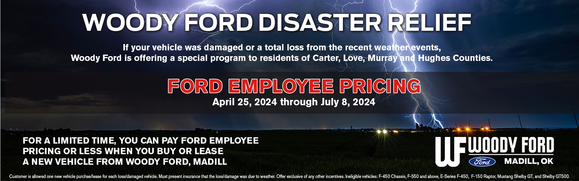 To ease the burden for those impacted by the recent severe weather, Ford is offering exclusive Employee Pricing to families affected by the tornadoes. This special pricing plan is designed to help you replace, upgrade, or purchase a new vehicle without the added financial stress during these trying times.